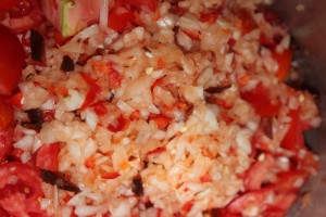 5. To finish off the homemade picante sauce, add the remaining ingredients and stir well.