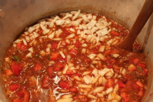 The first step in making garden fresh chili is to determine whether or not that you want to peel the fresh tomatoes. Although I don’t bother with process of removing the skins from the tomatoes, I know that some people don’t prefer having small peels floating in their bowl of chili.
