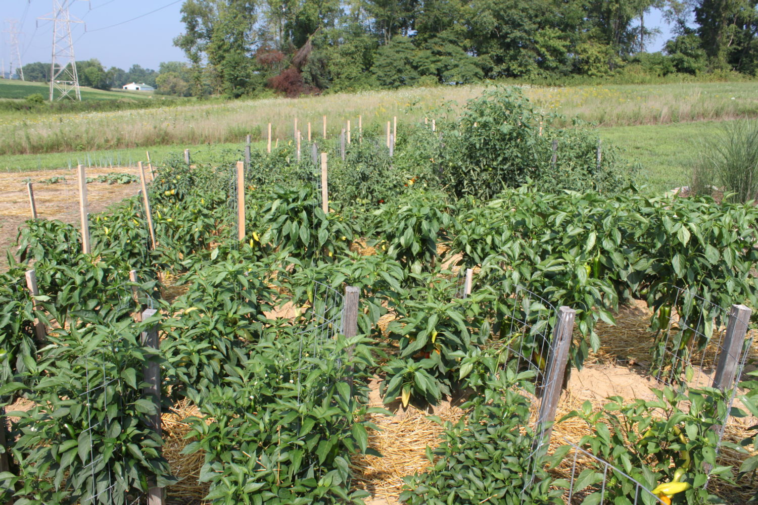 It doesn’t matter if it’s a pepper, cucumber, or tomato plant. Applying a healthy amount of mulch around the base of the plant really helps. It helps the soil temperature around the plant stay regulated and helps keep out weeds that compete for nutrients. It also helps hold in the water to the plants when it rains or when watering.