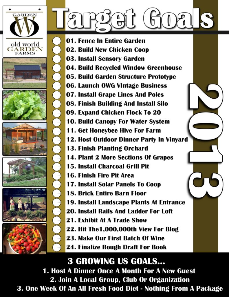 Whatever your goals for 2013 – Mary and I both wish everyone a prosperous and healthy New Year – and we thank each and every one of you who follow along with us on the blog as we continue working on the dream that is Old World Garden Farms.