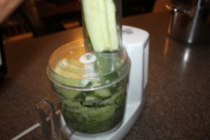 However, you must be careful not to pulse the vegetables too long. Otherwise, the cucumbers will turn to mush.