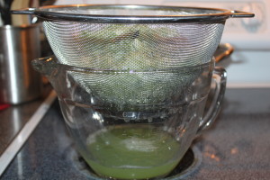 Next, drain the mixture in a strainer until all the liquid is removed. You will need to press the mixture against the strainer to remove the hidden moisture located in the center of the pile.