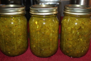 Once you remove your relish from the heat, immediately ladle the hot mixture into warm and sterilized, pint size mason jars.