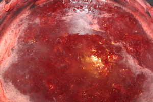 - Ladle jam into hot half pint jars, wipe off the rim, place warm lid on the jar and secure with the ring.