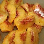 1. Prepare light syrup – in 4 cups of water, use 1 1/2 cups honey (or 2 cups white sugar) – heat until dissolved. Do not boil. Keep liquid just below a simmer for use to can the peaches.
