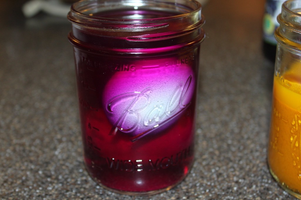 4. Let them soak until the desired colored is reached: Because we are using natural coloring methods the eggs may need to soak longer than if you used a dye packet.