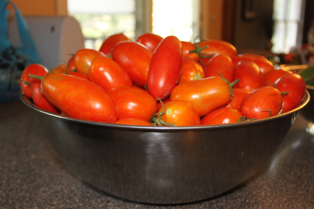 These varieties are commonly known as Roma, San Marzano or Amish Paste tomatoes. However, you may also find them generically labeled as paste tomatoes at the store or Farmer’s Market.