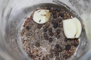 While the brine is heating up divide the spices evenly between 3 pint mason jars. *You can also make this in one large, container as well. In that case, add all of the spices to the container.