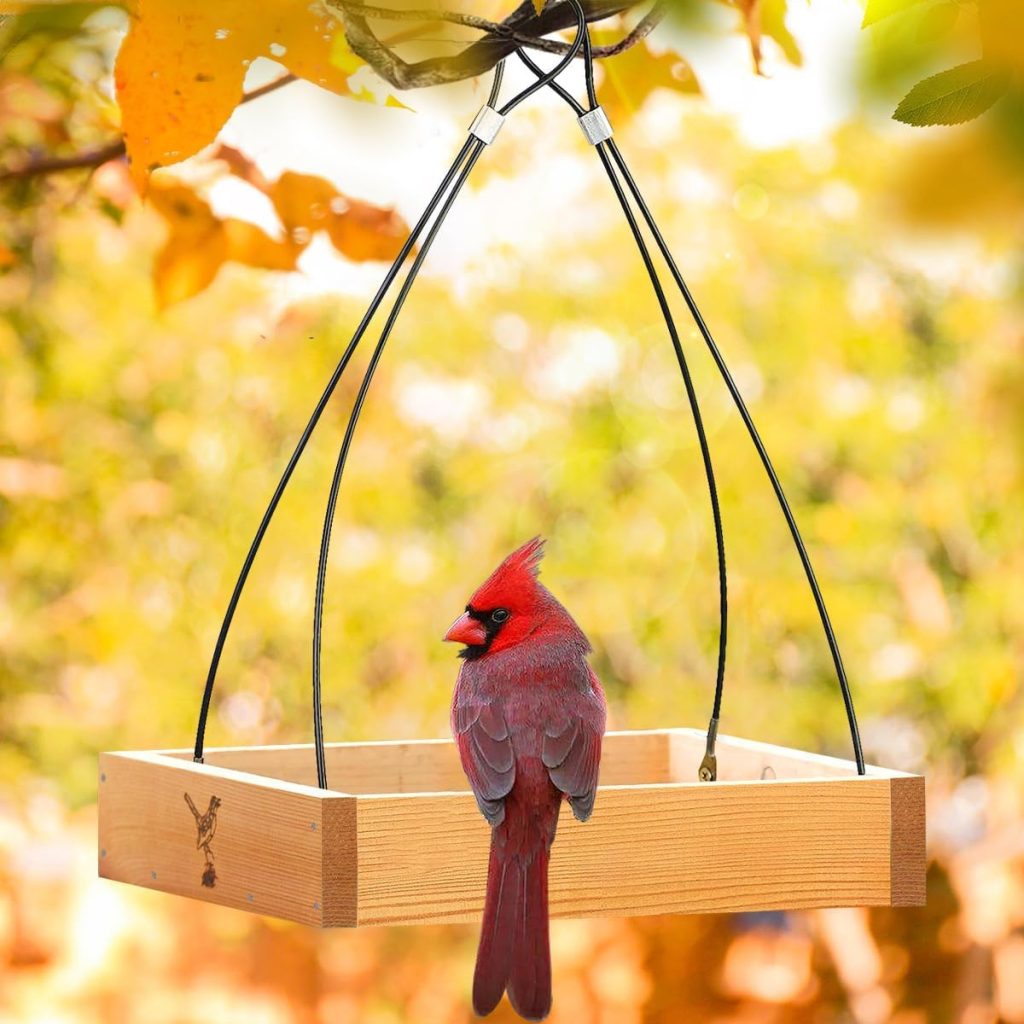 Look for feeders labeled as “cardinal-friendly” or designed with larger perching areas. These will have bigger, more sturdier ledges where they can sit and feed. Always avoid narrow tube feeders or suet cages, which aren’t as suitable for cardinals. Affiliate Link: Cedar Wood Platform Tray Bird Feeder 10” – Hanging Bird Feeder for Outside