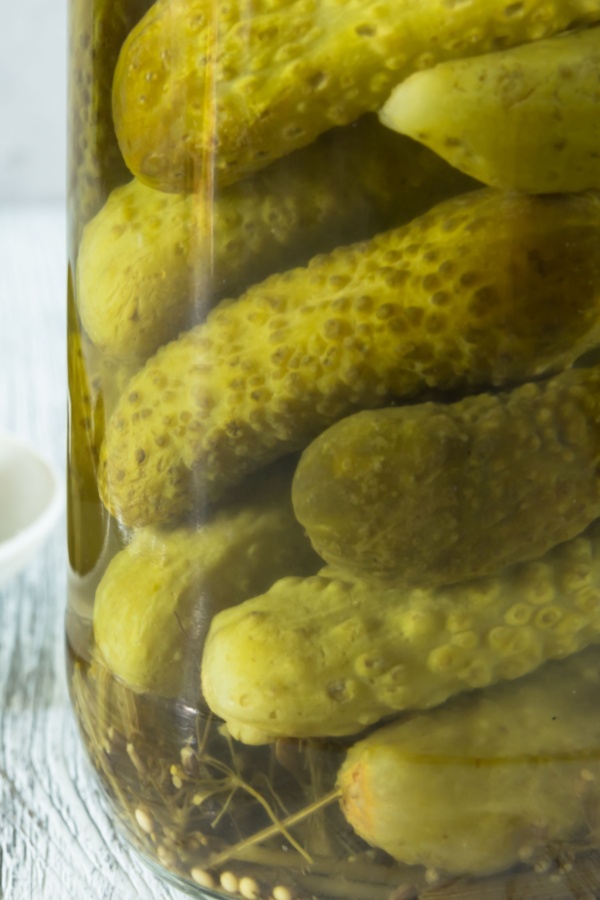 If you prefer to can your gherkins pickles for shelf-stable storage, you can process the jars in a hot water bath canner for 10 minutes. Make sure to adjust the processing time if you’re at high altitude.