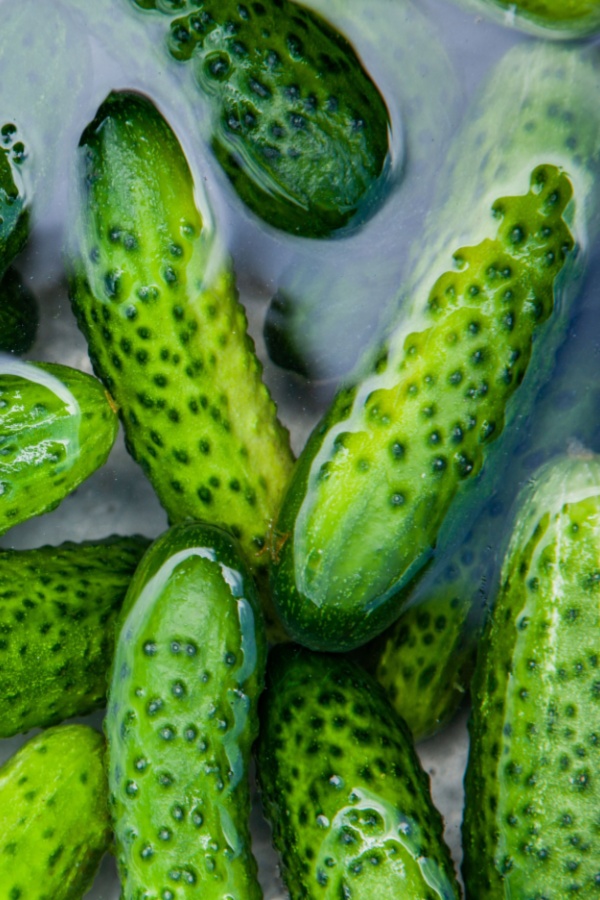 To start, you’ll need to soak the cucumbers in a saltwater solution. This helps draw out any excess moisture and gives the cucumbers a firmer texture when pickled.